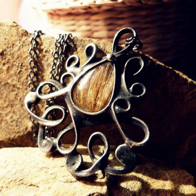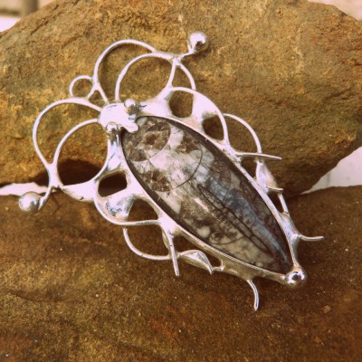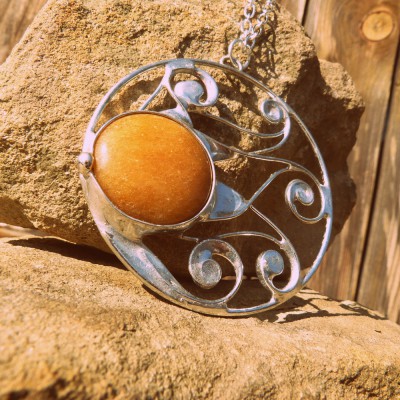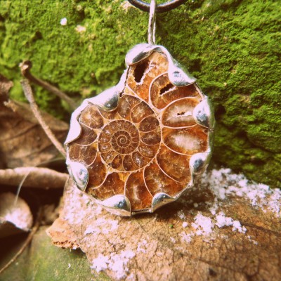 Cínovaný prívesok so skamenelou schránkou dávno vyhynutého živočícha. Amont je pomenovaný podľa boha slnka Amóna, vďaka svojej schránke, ktorá pripomína slnečný kotúč. Náleziská amonitov existujú aj u nás na Slovensku, napríklad v okolí Východnej. Prívesok je zavesený na čiernej koženej šnúrke so zapínaním na karabínku.