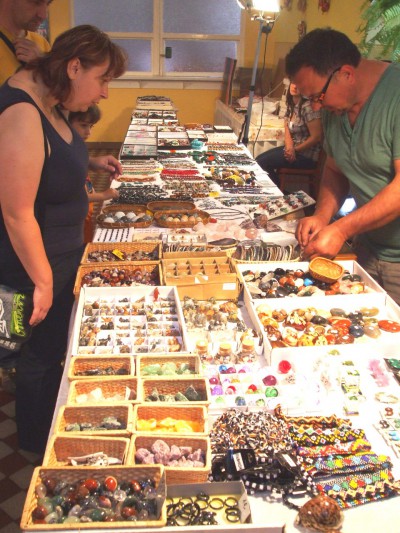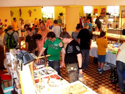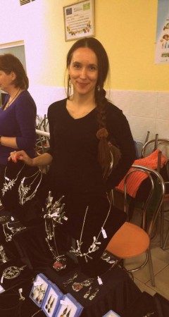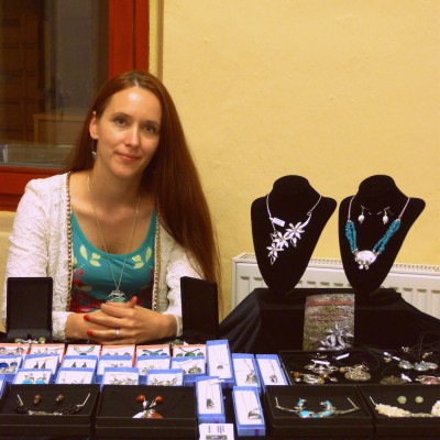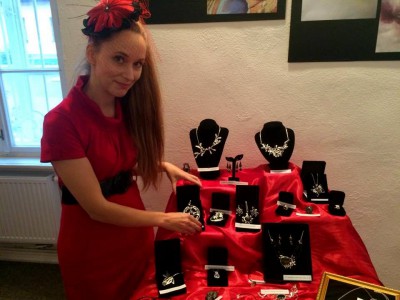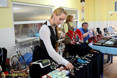 Po viac ako roku cínovania som sa konečne odvážila ísť so svojimi šperkami niekam medzi ľudí. Predchádzala tomu návšteva DÚ, kde mi moju účasť odobrili a išlo sa. Jedáleň ZŠ Kúpeľná bola plná do posledného miestečka a kam ste sa pozreli, tam žiarili nádherné minerály a zaujímave šperky. Bola som veľmi milo prekvapená reakciami tých, ktorí sa pristavili, aby si moju prácu pozreli zblízka. Párkrát sa stalo, že ľudia spoznali moje šperky z internetu :) Dokonca som dostala pár zaujímavých ponúk na spoluprácu, z ktorých mám nesmiernu radosť.