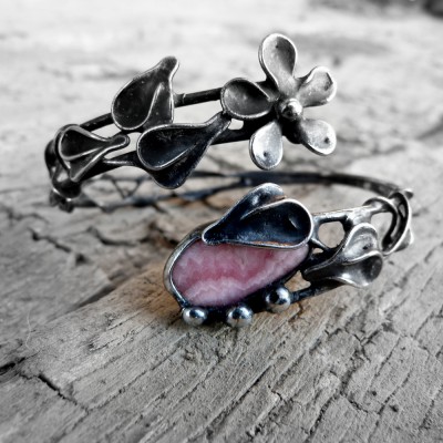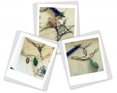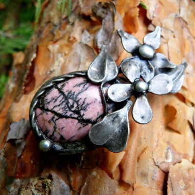 V prvom kroku som kameň oblepila medenou páskou a nasledovalo spevnenie medeným drôtikom po obvode pásky so špirálovitým prechodom na zadnú stranu kameňa. Z medeného drôtu som následne vytvorila kvety a lístky, ktoré som vyplnila a spojila s kameňom.