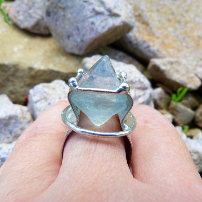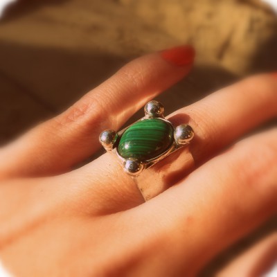 Obsidián všeobecne je známy svojou silnou energiou. Dokáže zosilniť pozitívne ale aj negatívne stránky svojho nositeľa. Prsteň s dúhovým obsidiánom je vhodný najmä pre tých, ktorým je treba pomôcť s nejakou závislosťou, keďže podporuje vytrvalosť a upevňuje vôľu. Kameň ná čiernu arbu no pod istým uhlom na ňom lúče svetla rozihrajú krásne dúhové odlesky v zelenýcha fialových farbách. Prsteň má nastaviteľnú obrúčku.