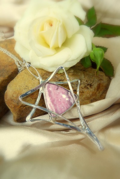 Veľkosť: prívesok 7,5 x 5,5 cm; kvet 2,5 x 3 cm; kameň 0,9 x 1 cm; retiazka 48 cm